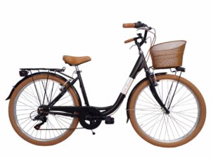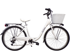 Bicicletta adatta per rilassanti passeggiate e per muoversi con praticità in città. Il suo telaio in acciaio misura 46 cm rende la bicicletta perfettamente adatta ad altezze comprese tra 155 e 175 cm circa. E’ dotata di cambio a 6 velocita’ ed ha ruote da 28″. Inoltre, garantisce una posizione di guida particolarmente rilassata grazie alla particolare conformazione del telaio e al posizionamento della sella, regolazioni che contribuiscono ad un’ottimo bilanciamento del peso corporeo durante la pedalata