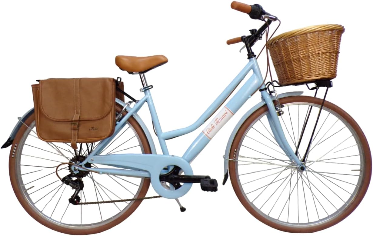 Cicli Tessari – bicicletta donna bici city bike da passeggio vintage 28 cesto vimini e borse laterali